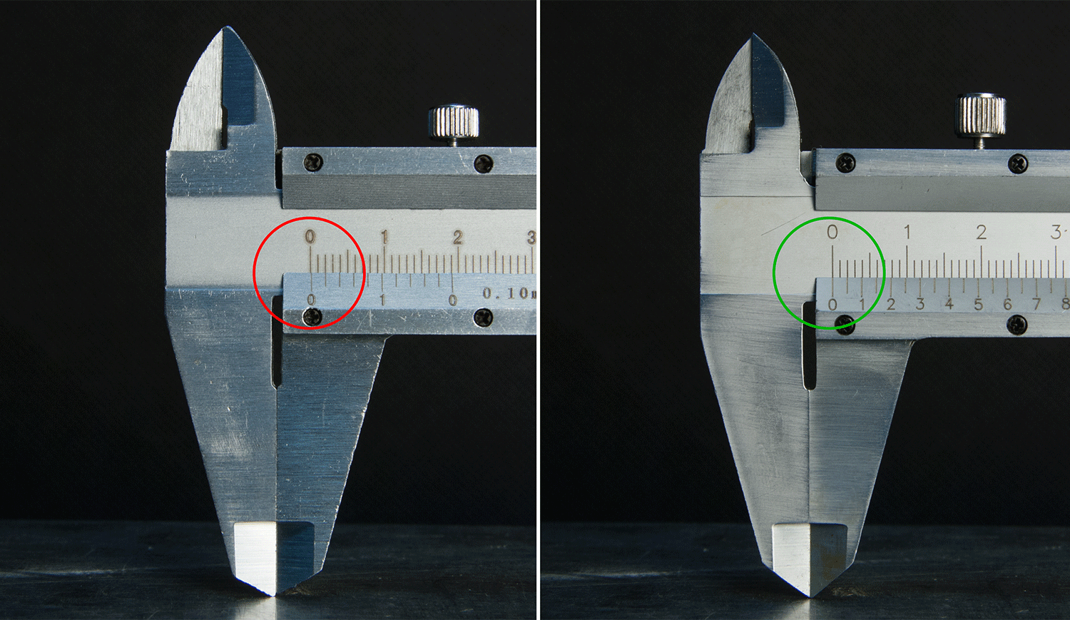 - при своде измерительных губок могут не совпадать нулевые штрихи нониуса и штанги