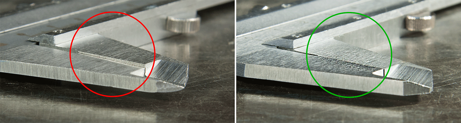 - боковые поверхности измерительных губок могут не совпадать между собой и образовывать ступеньку при смыкании;