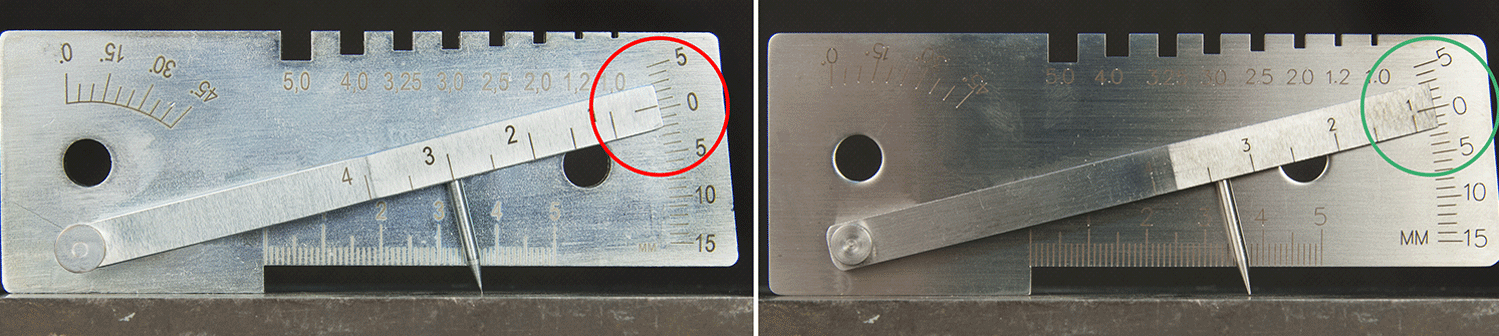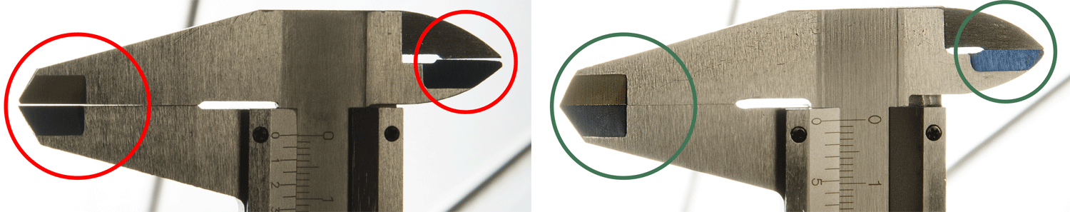- на измерительных губках могут быть канавки, оставшиеся после грубой механической обработки;