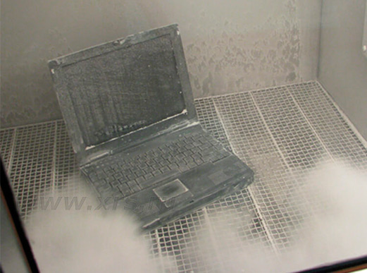 Испытания на степень защиты IP5X или IP6X проводят в пылевых камерах. Роль пыли в них играет порошок талька.