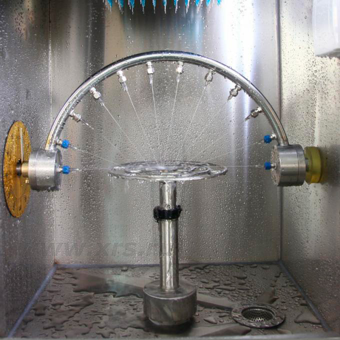 Испытания на защиту от проникновения влаги также проводят в специальных камерах (часто можно встретить название «камеры дождя»). Они позволяют смоделировать воздействие брызг воды, поэтому в них тестируются степени защиты от IPX1 до IPX4.