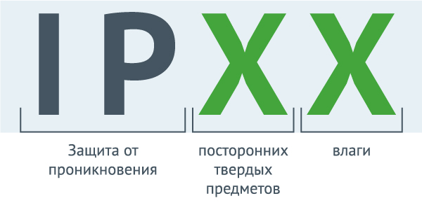 Иногда вместо первой или второй цифры кода используется буква «X», например, IP5X. Это значит, что необходимость в нормировании этого показателя отсутствует, следовательно, испытания на влагозащиту прибора не проводились.