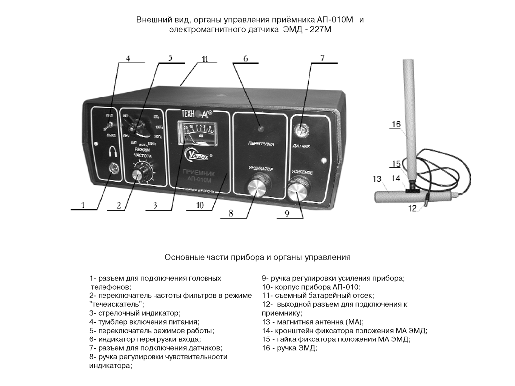 • Сумка для генератора, ЭМД, антенны, батарейного отсека, приёмника и комплекта