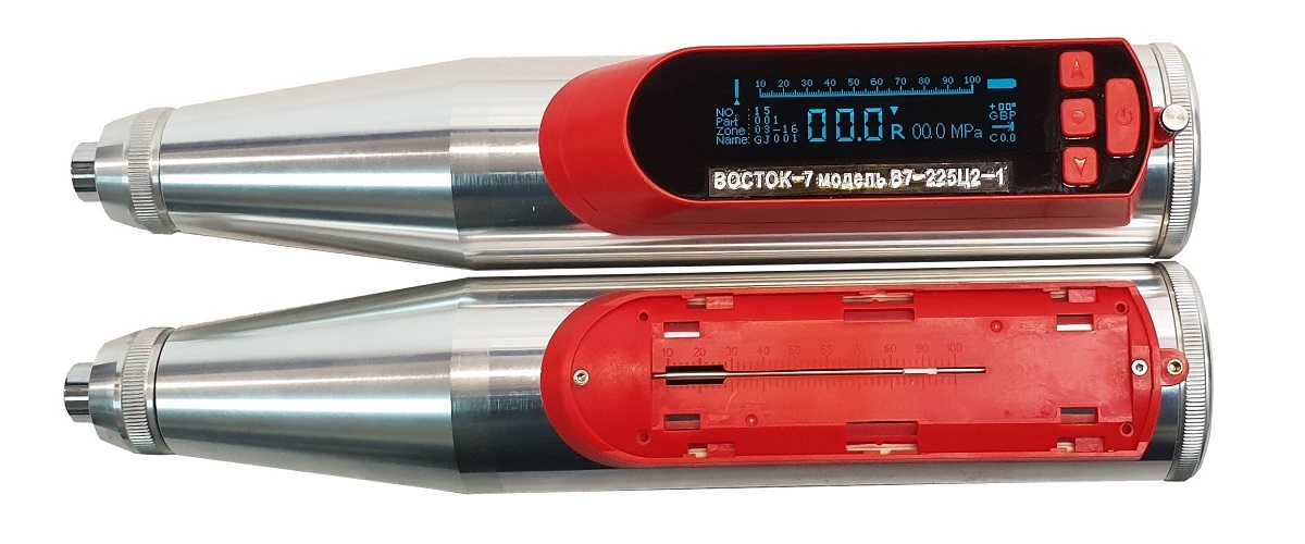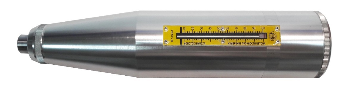 Молотки Шмидта (склерометры) В7-225 предназначены для определения прочности бетона на сжатие, а также для выявления неоднородностей, областей с плохим уплотнением бетона и пр. Принцип действия молотков основан на следующем: по испытуемой поверхности с нормируемой энергией наносится удар, затем измеряется высота отскока бойка, из которой выводится значение прочности бетона на сжатие.