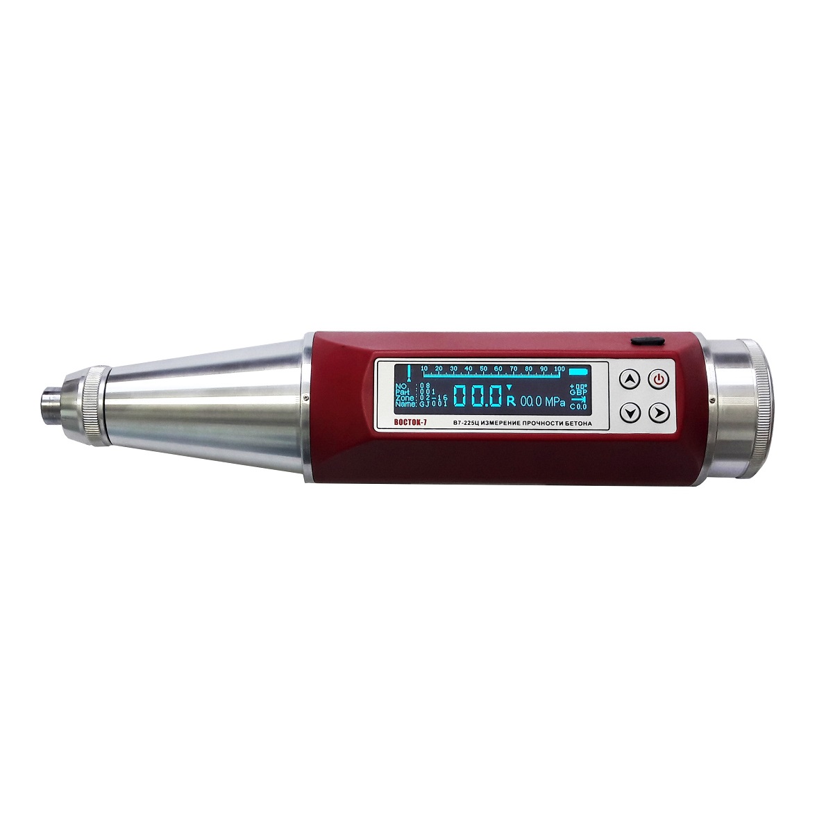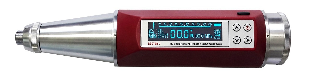 В7-225Ц — модель с цифровым индикатором. Значение отскока R пересчитывается и отображается на дисплее в выбранных единицах измерения: МПа, Н/мм², кгс/мм². Имеет память на 4000 замеров, с возможностью группировки данных в 16 зон по 16 замеров. Сохраненные данные можно импортировать на компьютер через интерфейс USB. В меню прибора также есть функция введения поправок с учетом положения молотка относительно горизонтали и типа поверхности (стена, потолок, пол).