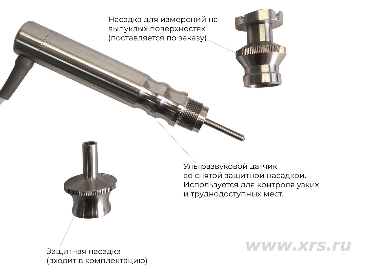 Для измерений в труднодоступных местах (пазах, отверстиях, канавках) защитная насадка с ультразвукового датчика может быть снята.