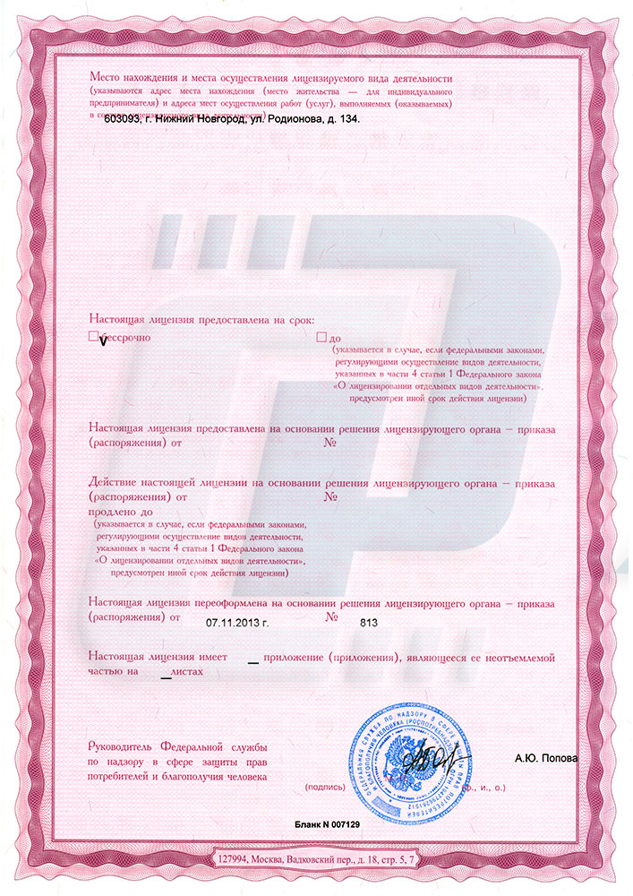 Лицензия компании «Технотест» на осуществление деятельности в области использования источников ионизирующего излучения (генерирующих) (за исключением случая, если эти источники используются в медицинской деятельности).