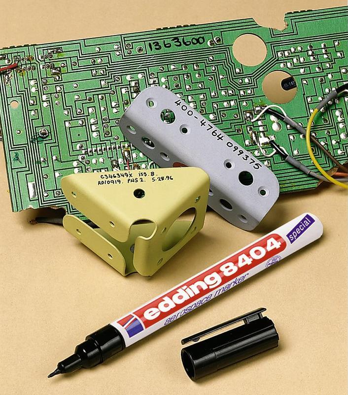 Маркер Edding 8404 разработан специально для маркировки электронных компонентов и небольших деталей, в том числе в аэрокосмической отрасли, так как его чернила устойчивы к воздействию разреженной атмосферы. Может использоваться для разметки изделий из металла, керамики, стекла, пластика.