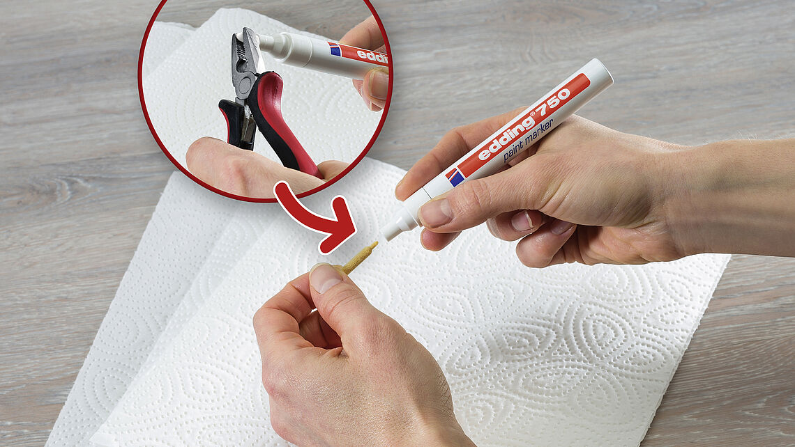 Непрозрачные лаковые чернила Edding содержат высокую концентрацию пигмента, что позволяет им хорошо ложиться на гладкие и шероховатые поверхности и делать четкие надписи густым плотным слоем даже на темных поверхностях. Специальные добавки, введенные в состав чернил, растворяют масляную пленку на поверхности письма.