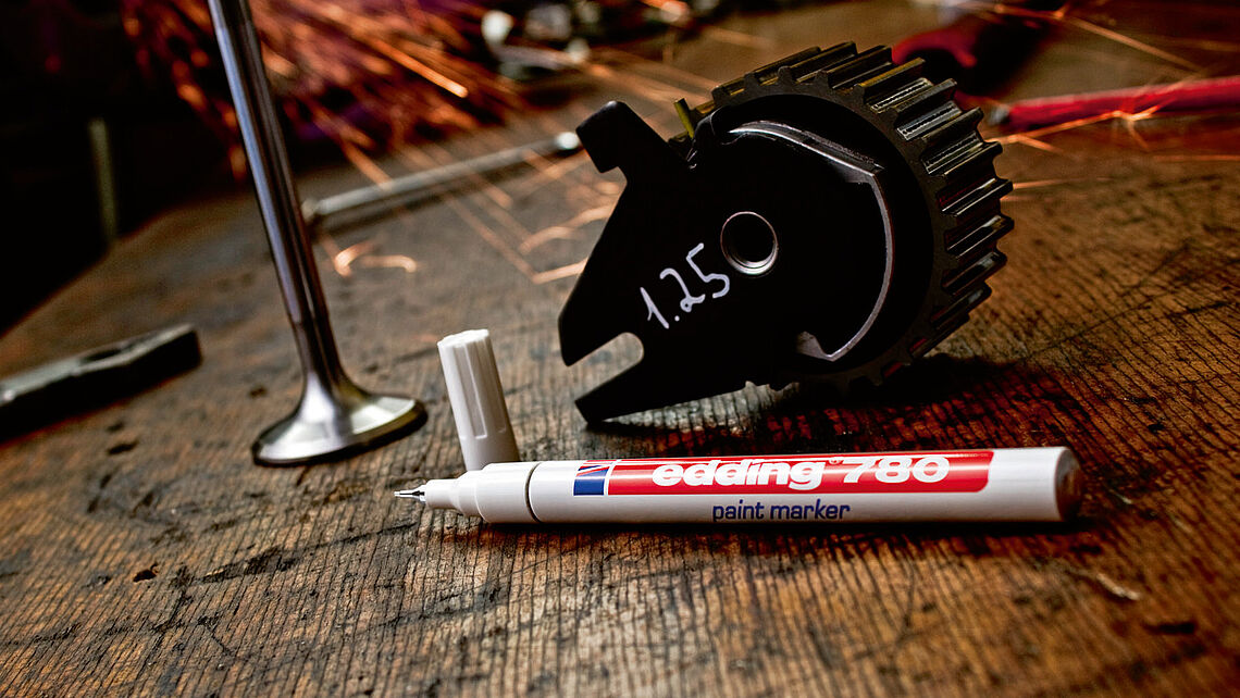 Маркер оснащен тонким наконечником, который оставляет штрих шириной всего 0,8 мм. Подходит для маркировки небольших изделий, например, шлангов, маленьких труб или деталей. Надпись, нанесенная маркером Edding 780, устойчива к температурам до +400 °С. Белые и серебряные чернила еще более термостойки и остаются видимы после воздействия температур до +1000 °С.