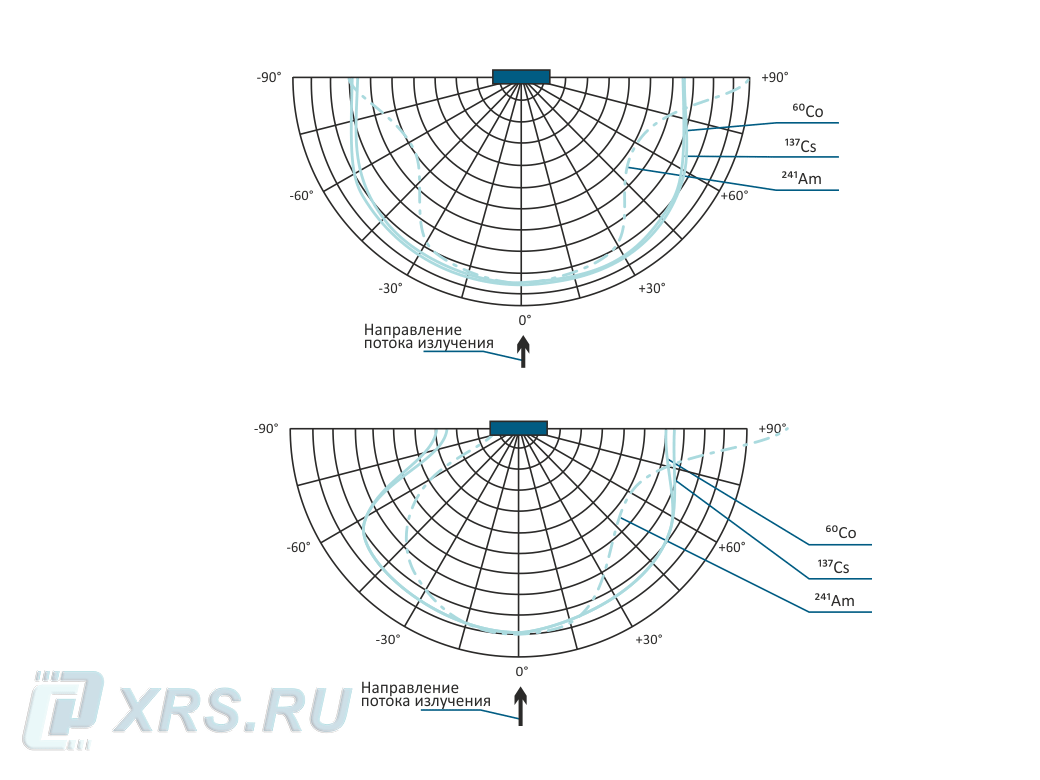 Типовая зависимость чувствительности дозиметров ДКГ-АТ2140 от угла падения гамма-излучения (анизотроприя)