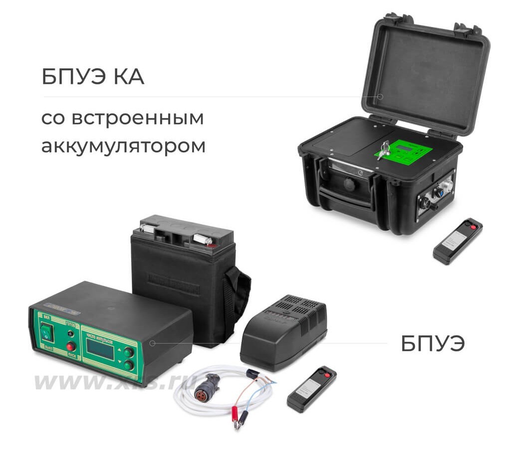 Пульт БПУЭ КА помещен в ударопрочный кейс и может работать от сети переменного тока 220 В или от встроенного аккумулятора 12 В / 12 А·ч.