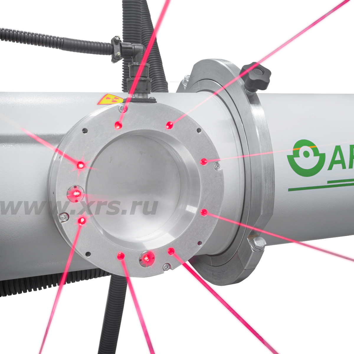 Главным отличием модификации АРИОН ЛЦПК является наличие 8 дополнительных точечных лазеров, которые показывают условную область проекции пучка излучения на объекте контроля. Благодаря такому контуру перед проведением экспозиции возможно визуально оценить зону покрытия рентгеновского излучения. Два основных лазерных модуля формируют центр проекции пучка излучения в виде перекрестия лазерных лучей. Основные и дополнительные лазеры работают одновременно.