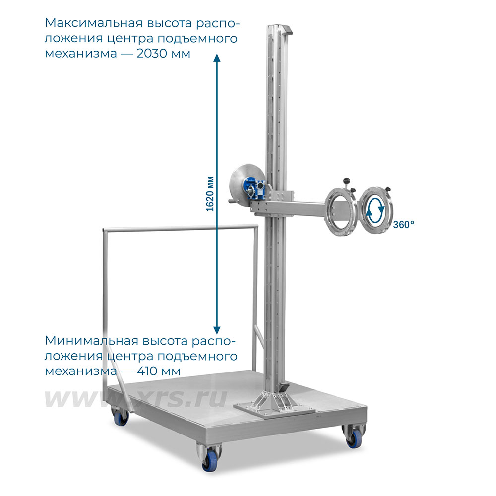 Штатив-манипулятор АРИОН ШСУ-2М оборудован выносной стрелой с хомутами для надежного крепления рентгеновского аппарата. Ручной подъемный механизм позволяет вертикально перемещать стрелу вместе с рентгеновским аппаратом.