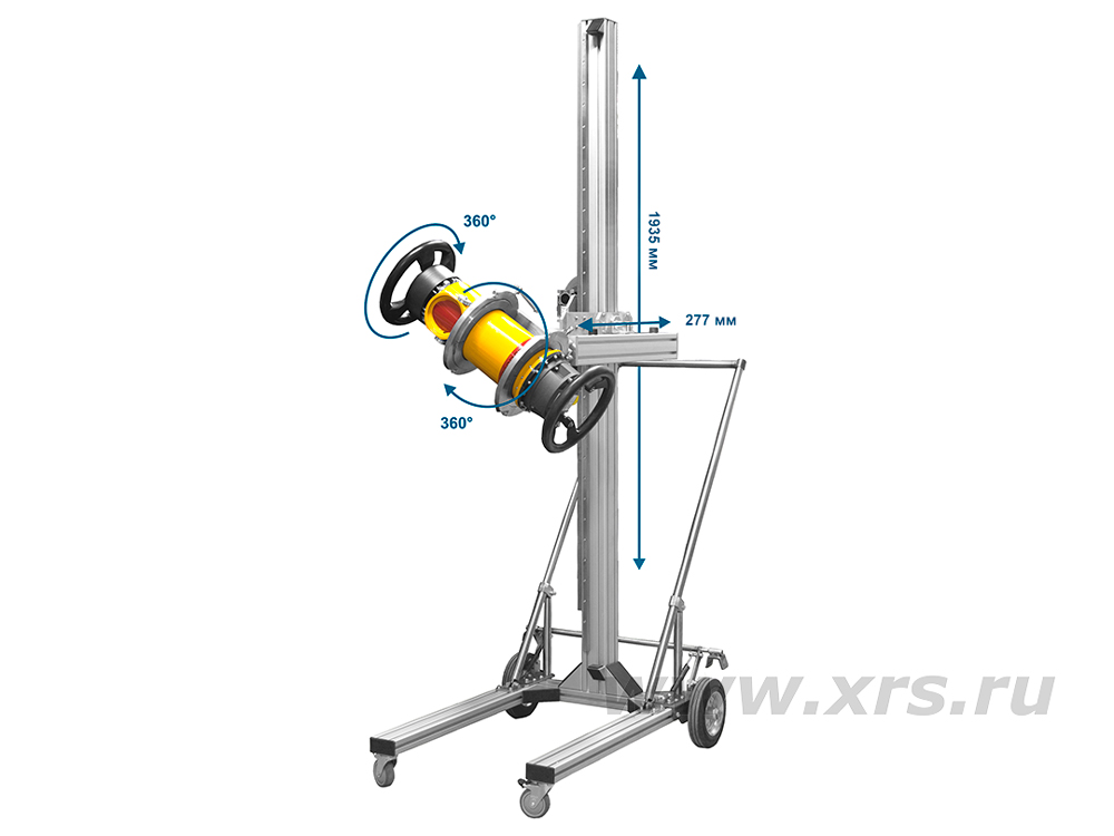 Штатив-тележка «XRS-3T» имеет выносную стрелу для ручного горизонтального перемещения рентгеновского аппарата, позволяет вертикально перемещать рентгенаппарат, вращать его в вертикальной плоскости и вокруг своей оси.