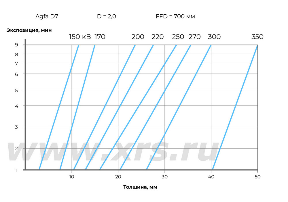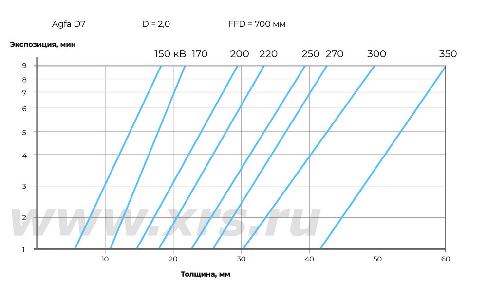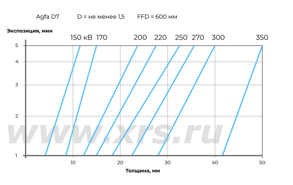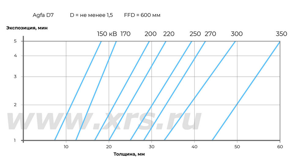 Ниже приведены номограммы экспозиций для направленных и панорамных рентгеновских аппаратов RayCraft XS при просвечивании стали.