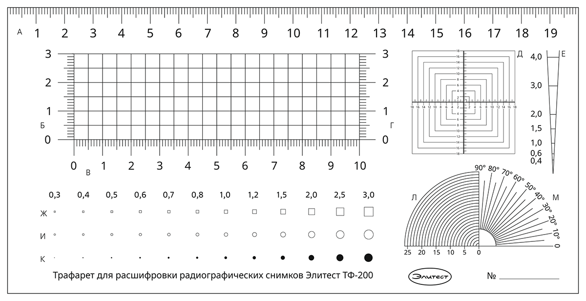 Трафарет ЭЛИТЕСТ ТФ-200 для расшифровки радиографических снимков (мерный шаблон)