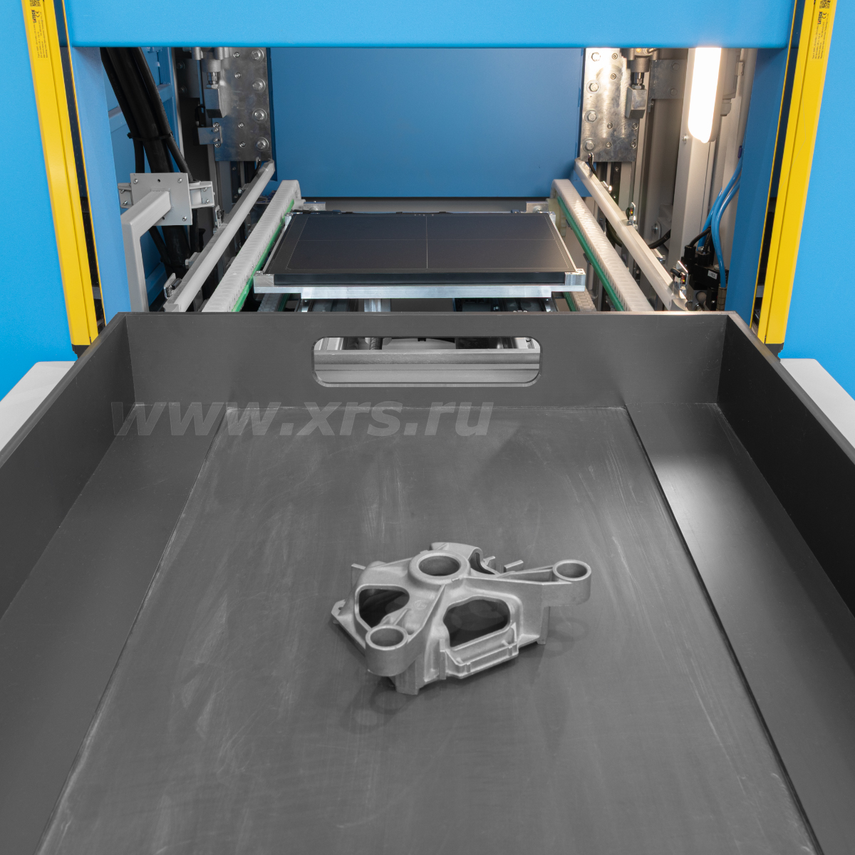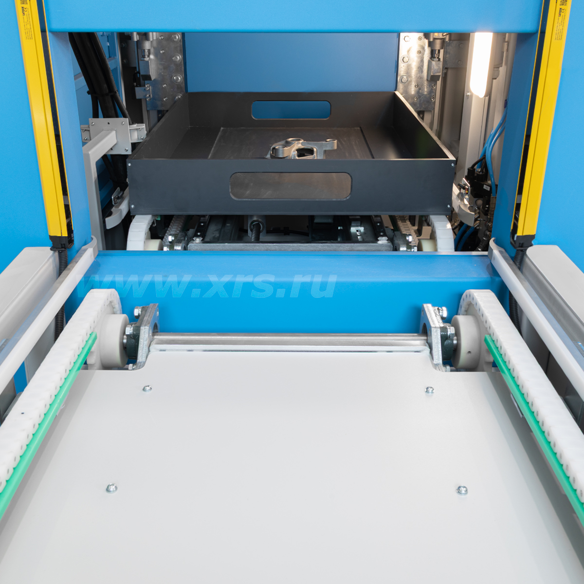 Рентгенозащитная камера установки представляет собой конструкцию туннельного типа. Она оснащена двумя автоматизированными дверями и сквозным автоматизированным конвейером для перемещения объектов контроля. Контролируемое изделие помещается на паллету, затем по конвейеру загружается внутрь камеры. На конвейере одновременно могут находиться две паллеты. Открытие и закрытие дверей, а также управление перемещением паллет осуществляется с помощью кнопок на пульте управления.