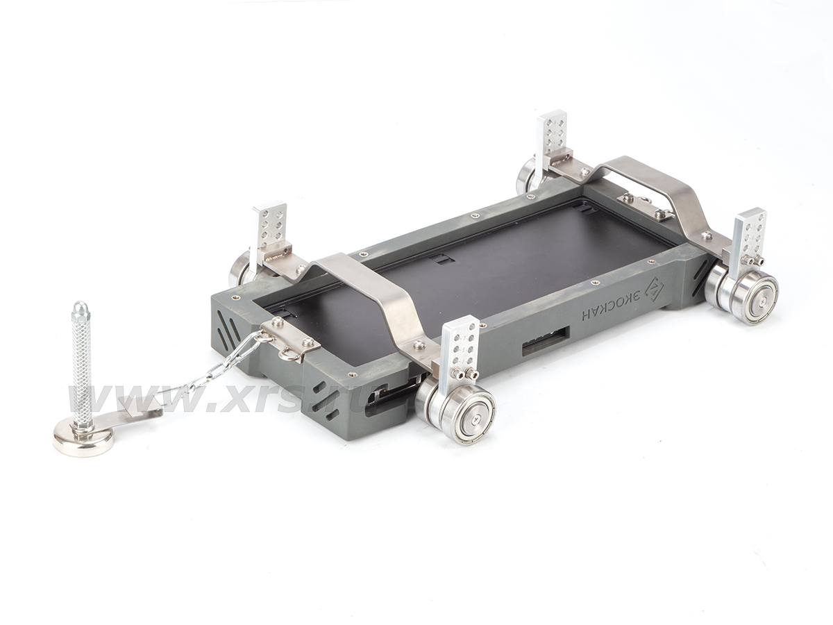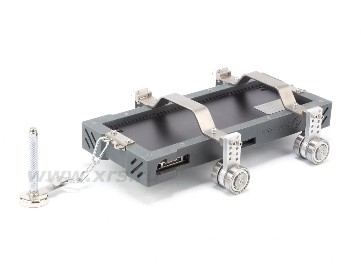 Магнитные колеса ЭКО-10МК используются для позиционирования плоскопанельного детектора Экоскан 10 в защитном кожухе ЭКО-10У на трубах диаметром от 219 мм и плоских объектах контроля из ферромагнитных металлов, ориентированных в любом пространственном положении. Приспособление оснащено фиксатором с магнитным основанием, который работает как якорь и исключает скатывание детектора с наклонной поверхности.