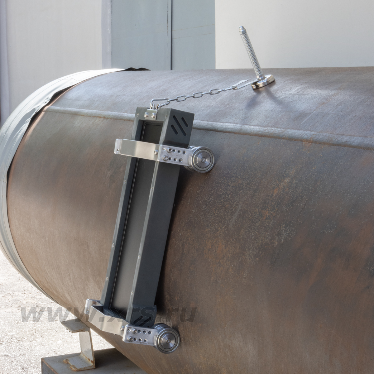 Магнитные колеса ЭКО-10МК удобно использовать при контроле кольцевых сварных соединений труб и резервуаров большого и среднего диаметров. Они легко позиционируются вдоль сварного соединения и дают возможность плавно перемещать детектор, не снимая его с трубы.