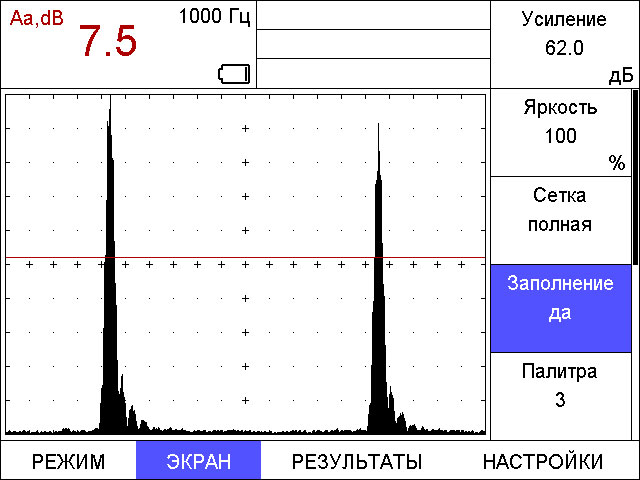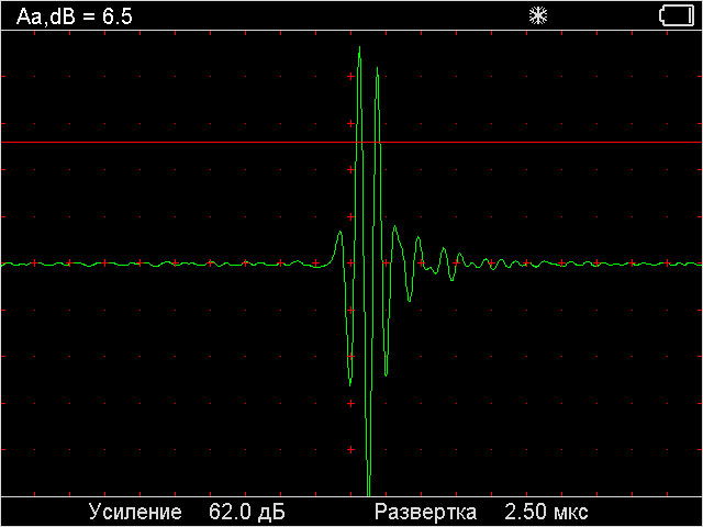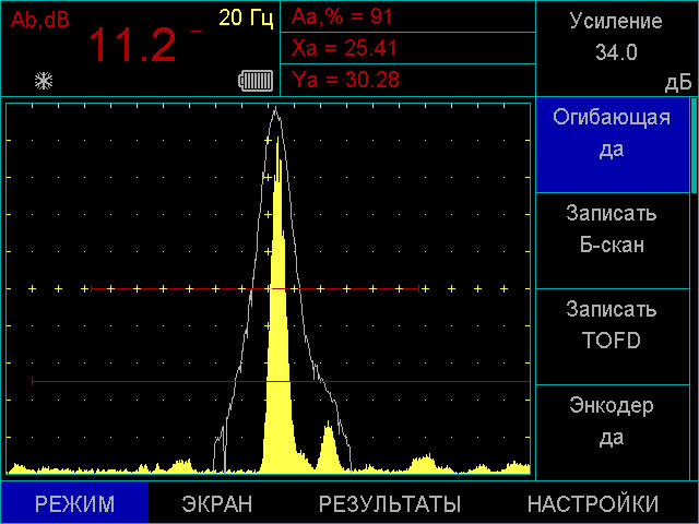5) Режим огибающей для надежной фиксации максимума сигнала; предназначен для оценки формы дефекта при УЗ контроле сварных швов и основного металла.