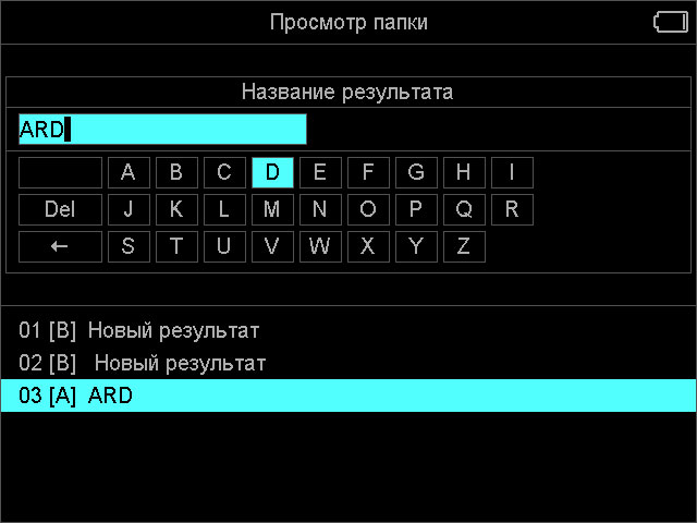 7) Сохранение и просмотр результатов УЗ контроля на дисплее прибора (расширенная память для хранения результатов контроля: 200 установок с А-сигналом, 1000 протоколов исследований с сохранением всех необходимых для документирования значений).