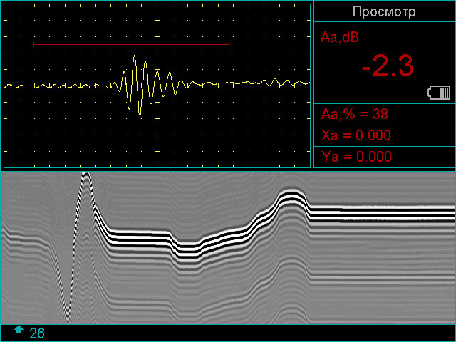 4) Режим B-скана для более удобной визуализации процесса УЗ контроля.
