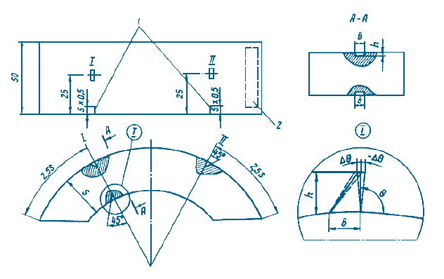 Размеры угловых отражателей и параметры контроля гибов: