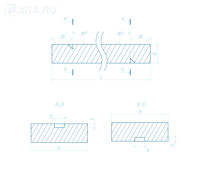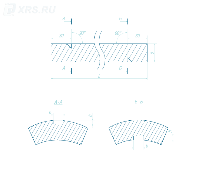 Каждый образец, вне зависимости от типа СОПа (трубный или плоский), имеет два угловых отражателя («зарубки»). Одна «зарубка» находится на верхней поверхности изделия (на рисунке далее — отражатель «А»), а другая — на нижней поверхности настроечного образца, на противоположном конце (на рисунке далее – отражатель «Б»).