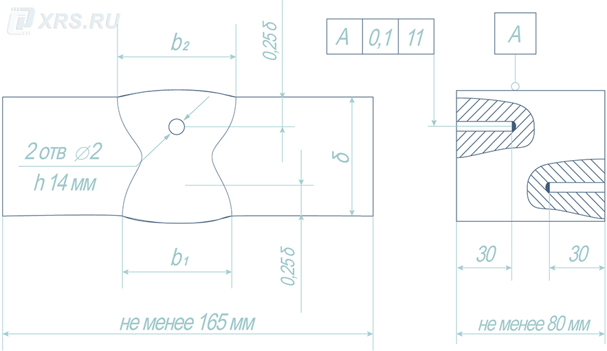 Все требования к настроечному образцу (как то толщина или длина) указываются заказчиком в техническом задании.