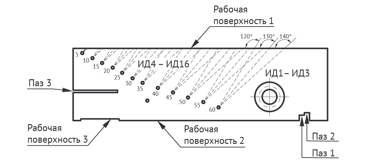 СО-1 выполнен в виде параллелепипеда с искусственными дефектами (отражателями), которые представляют собой пазы и отверстия различных размеров.
