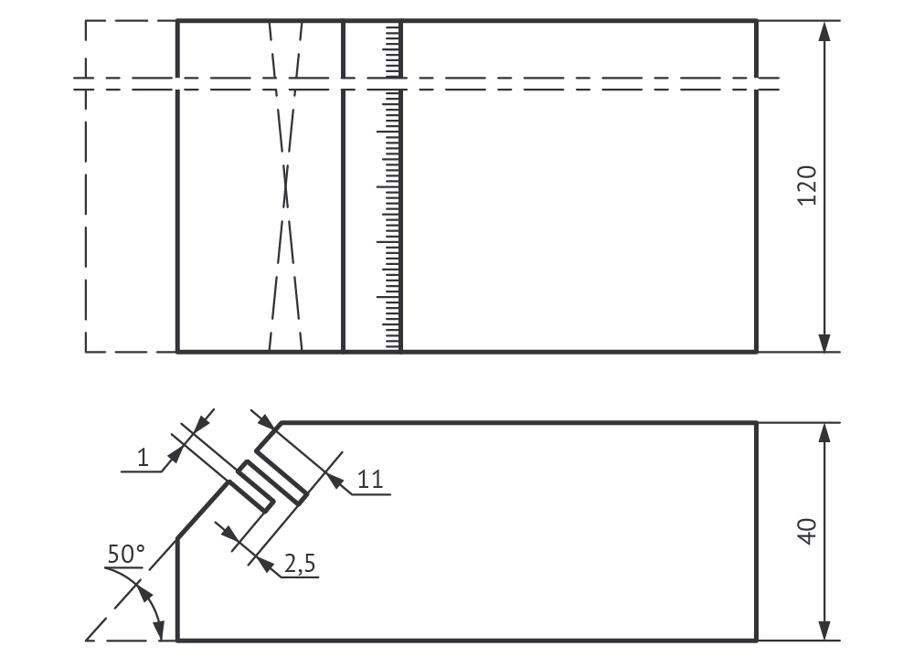 Схема стандартного образца СО-4.1 с указанием рабочих сторон и пазов