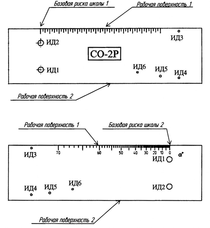 | Смещение базовой риски шкалы 1 и шкалы 2 относительно проекции центра ИД1 на рабочую поверхность 1, мм |