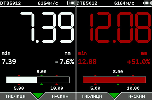 мин.: 0–7,2 мм макс.: 0–500 мм (сталь) |