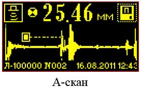 - Файловая система в толщиномере предназначена для сохранения настроек и результатов контроля, сохраняются А- и B-сканы, а также численные значения толщины изделия.