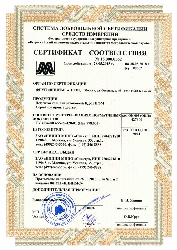 Открыть инструкцию по эксплуатации вихретокового дефектоскопа ВД-12НФМ в новом окне