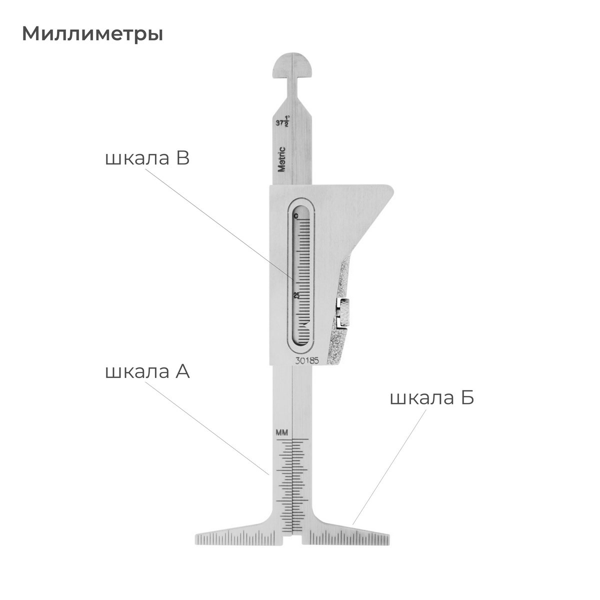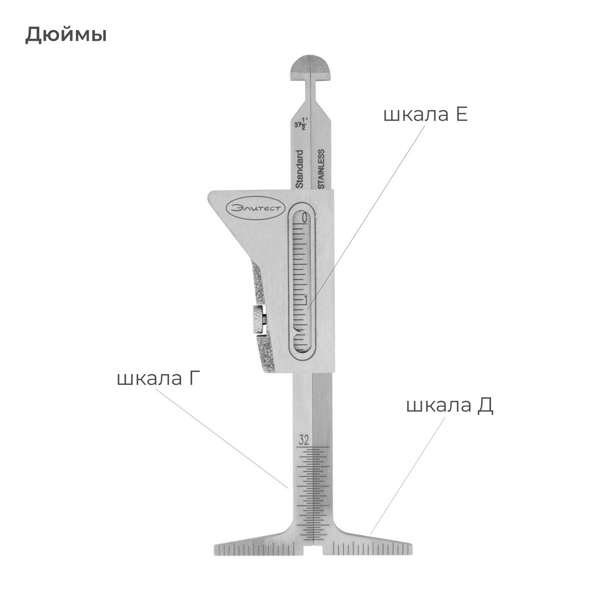 * Параметры, контролируемые шкалами (А), (Б) и (В), можно измерить в дюймах, используя шкалы (Г), (Д) и (Е).