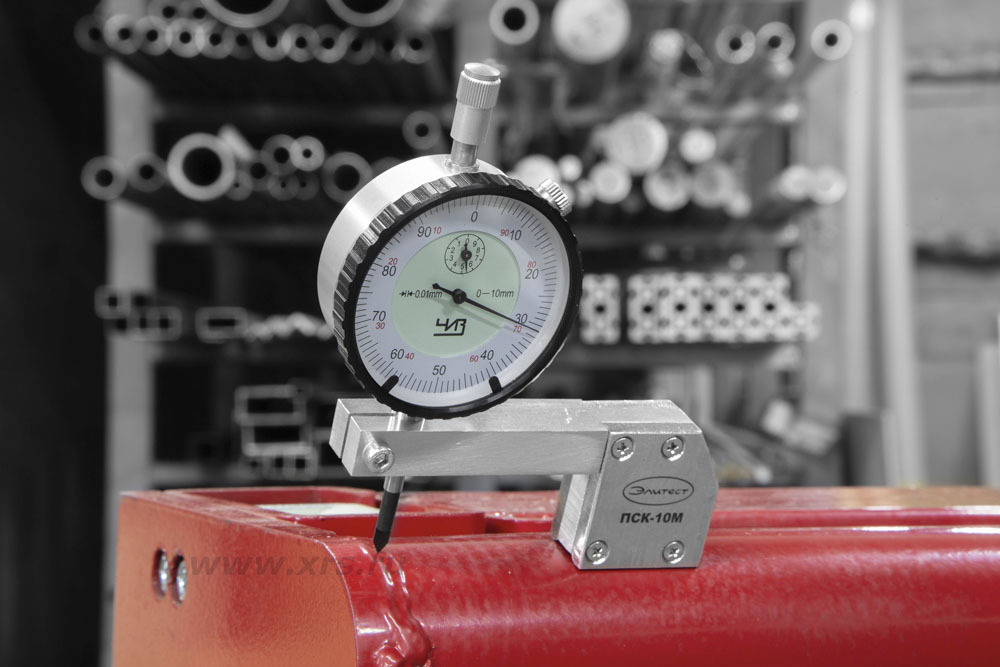 Индикатор часового типа имеет диапазон измерения 10 мм с ценой деления 0,01 мм. Расстояние между основанием опорного кронштейна и измерительным наконечником индикатора равно 50 мм. Подобная конструкция позволяет измерять не только глубину подрезов, но и смещение кромок.